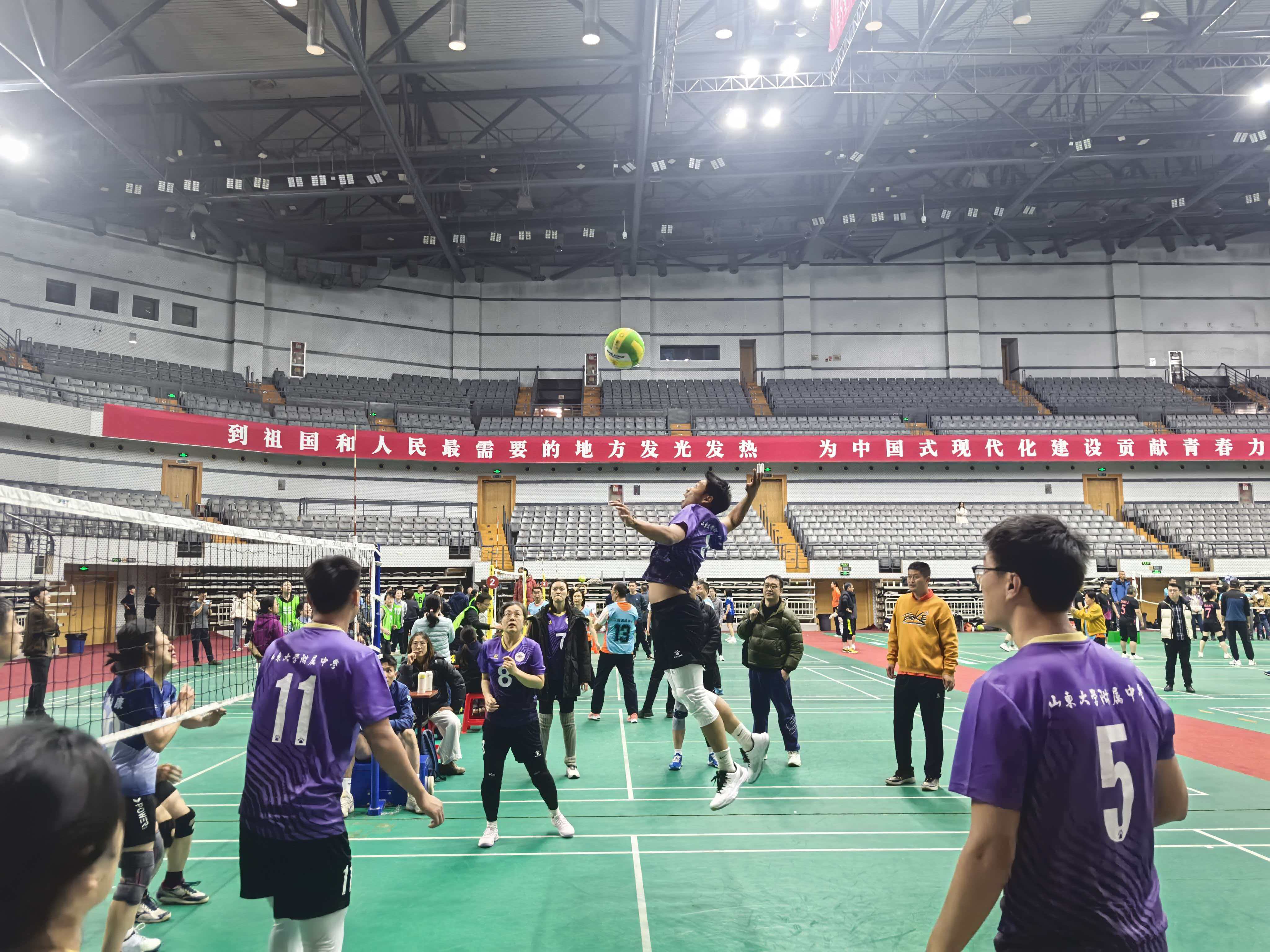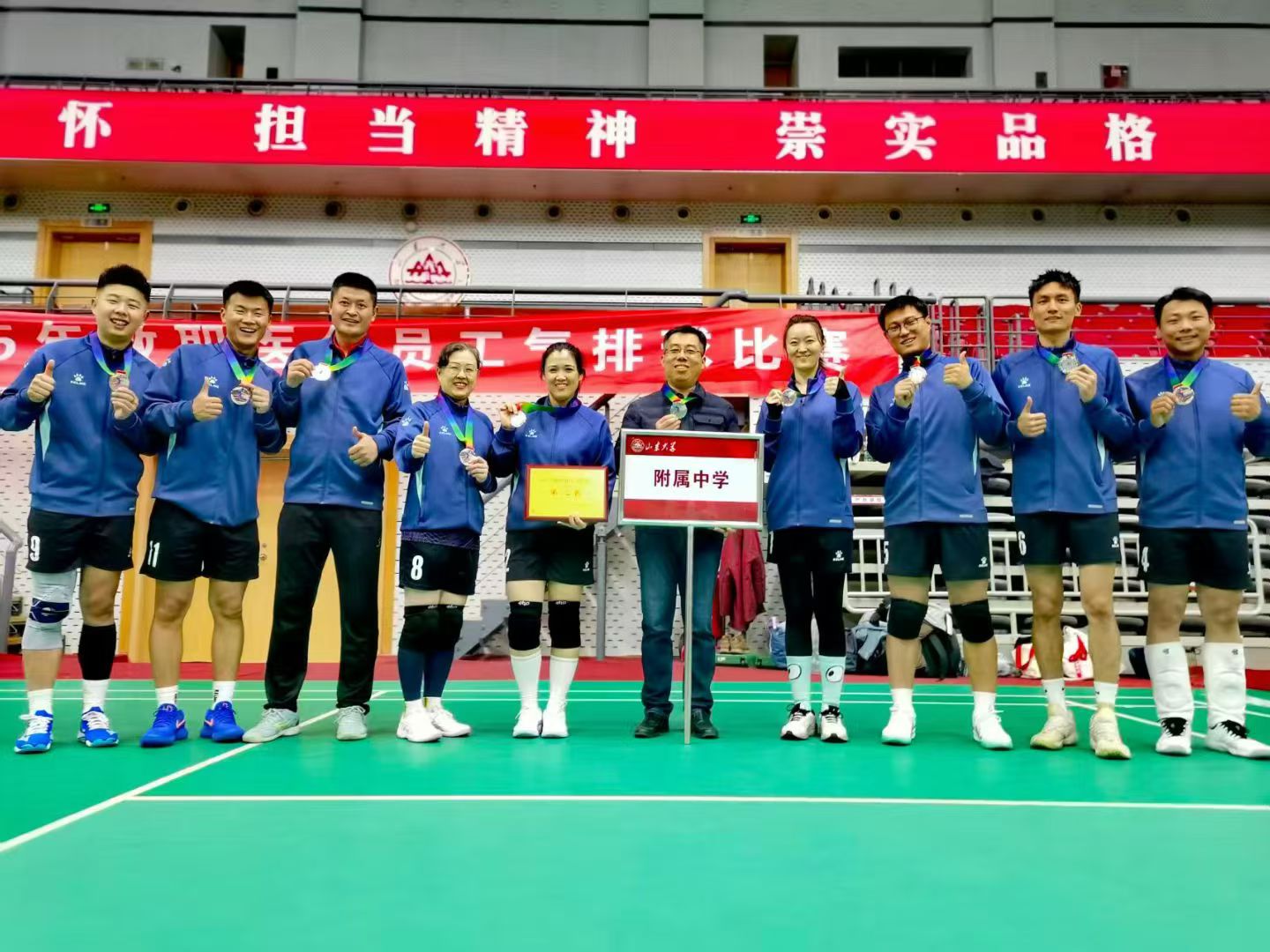 近日,山东大学教职工气排球比赛在中心校区体育馆圆满落下帷幕。山东大学附属中学气排球队凭借顽强的拼搏精神、默契的团队协作与精湛的技战术发挥,历经多轮激烈角逐,最终荣获亚军。