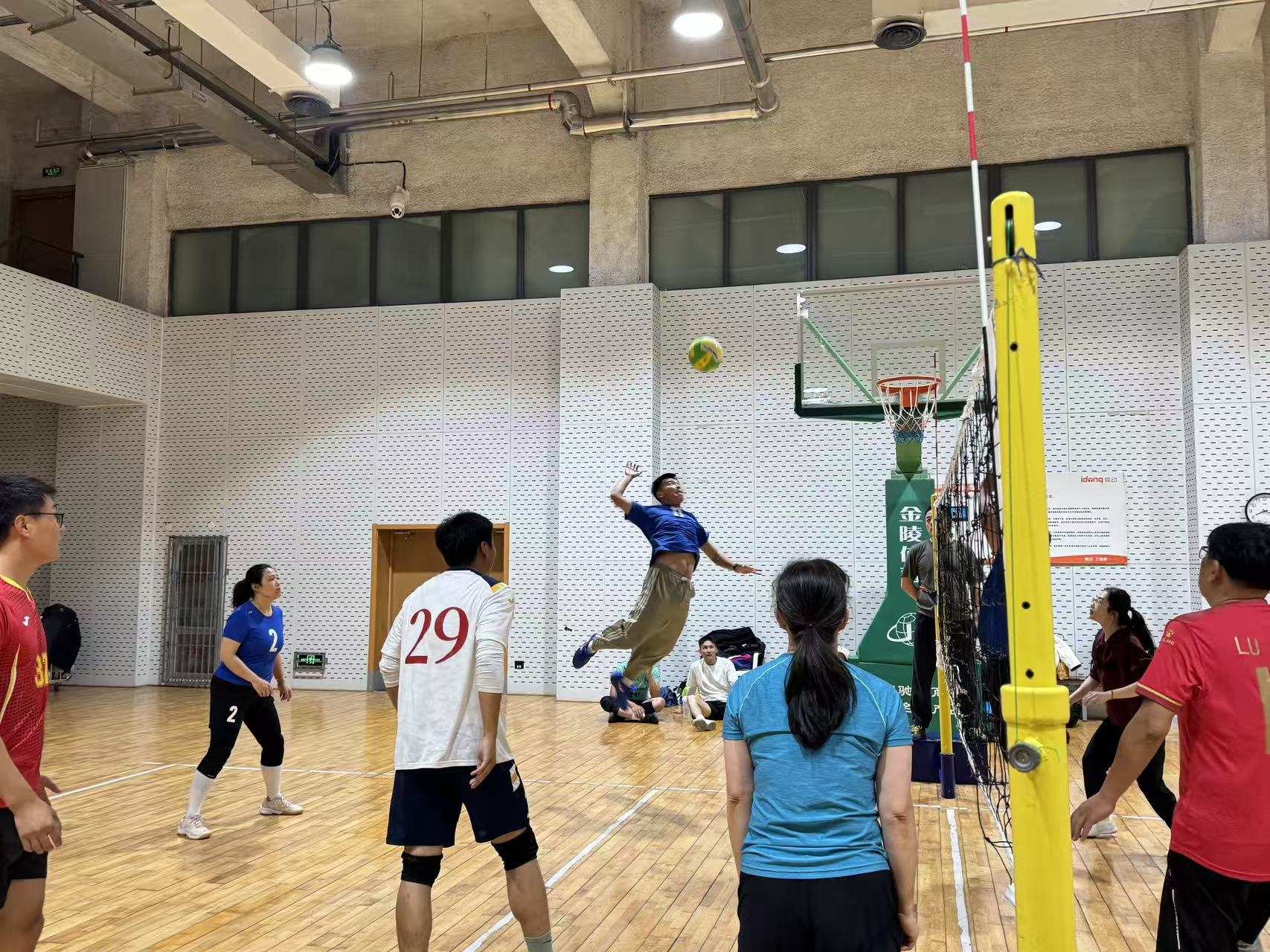 为迎接此次比赛,附中气排球队的教师们克服教学任务繁重、时间紧张的实际困难,主动利用工作日晚间及周末休息时间,投入系统训练,反复打磨技术细节。备战过程中,团队凝聚力处处彰显:负责工会工作的朱子炎与夏利杰老师率先垂范,亲临现场为队员们加油鼓劲;教练张强强老师以专业视角精准指导;队长魏鲁霄老师则勇挑重担,积极协调训练安排,平衡教学与备赛,带领全队刻苦备战,成为队伍中不可或缺的“主心骨”。